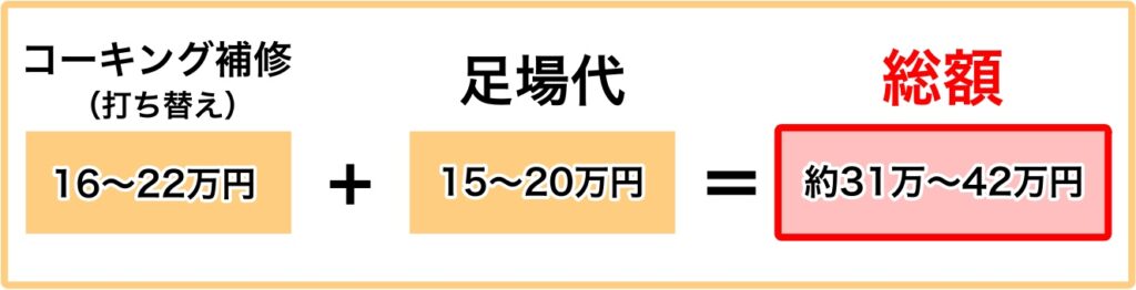つまり、先ほどのコーキング補修費用に足場代を加えると…