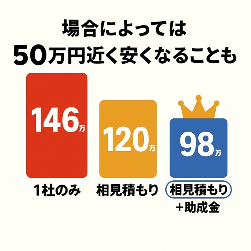 実は、複数の業者で見積もりを取るだけで、費用はかなり安くなる場合があります!
